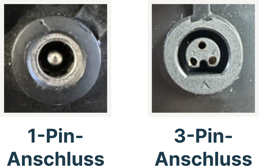 ACHTUNG: Je nach Kaufjahr Ihres Fahrrads kann der Batterieanschluss unterschiedlich sein. BITTE ÜBERPRÜFEN SIE DIE KOMPATIBILITÄT UNSERER 2 ANSCHLUSSMODELLE: 1 POLIG ODER 3 POLIG.