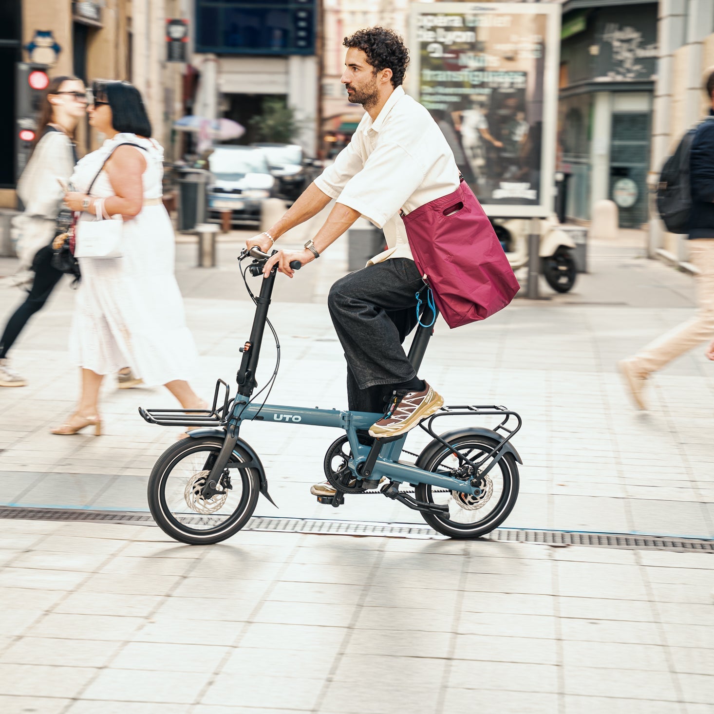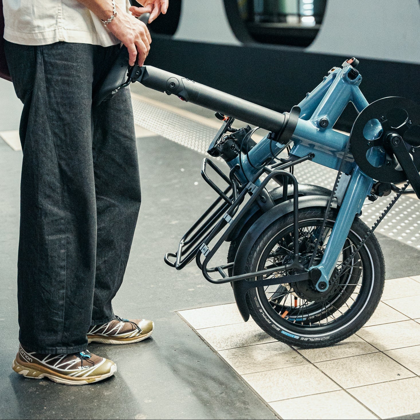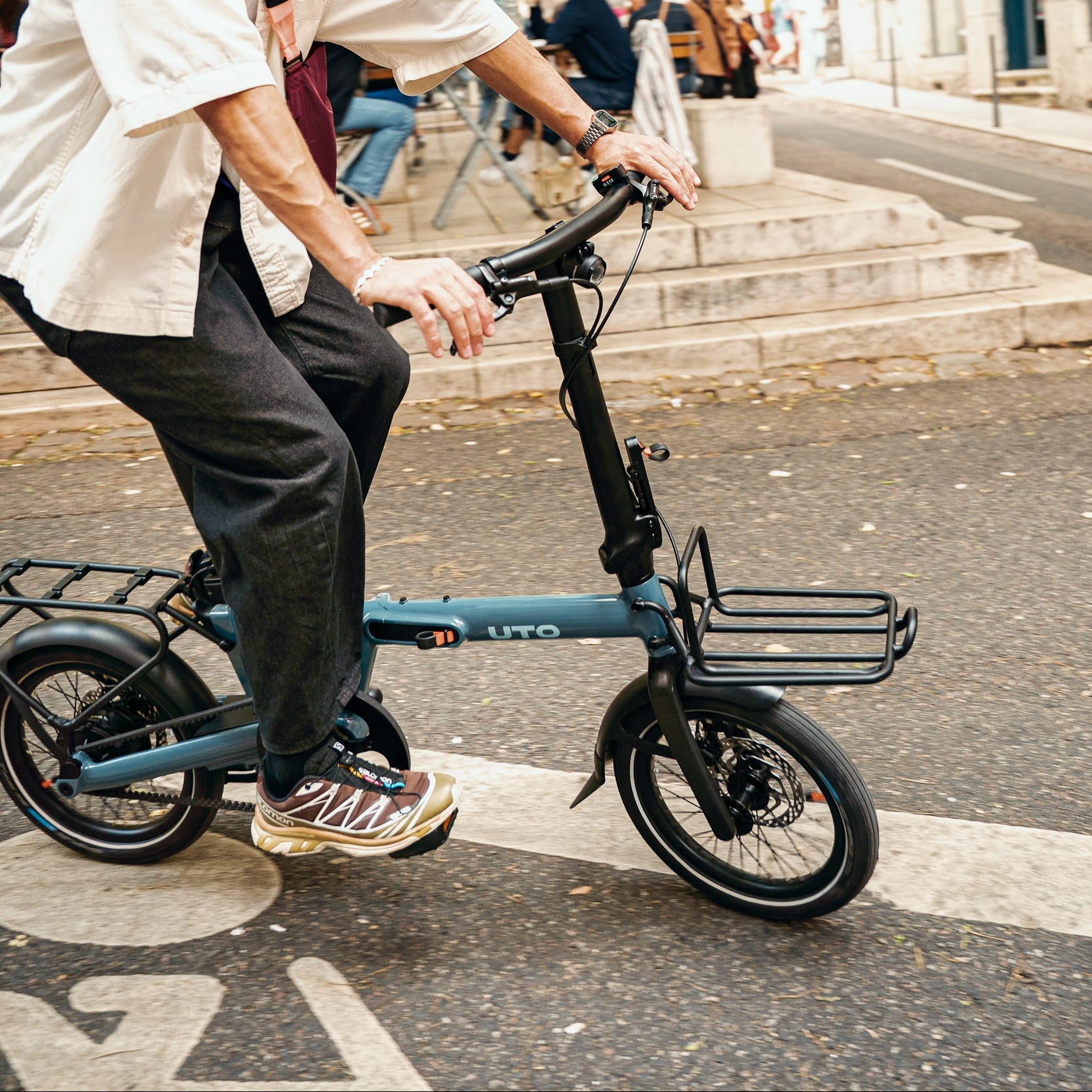 Vorderer Aluminium-Gepäckträger, kompatibel mit allen Fahrrädern der PRO-Serie (PRO16 / PRO20 / PRO20 NE (nicht elektrisch)). Entwickelt, um einen Rucksack BAG, eine Tote Bag TOTE oder andere Träger wie z. B. eine Kiste zu befestigen. Einmal montiert, behindert der Gepäckträger in keiner Weise das Zusammenklappen Ihres Fahrrads.