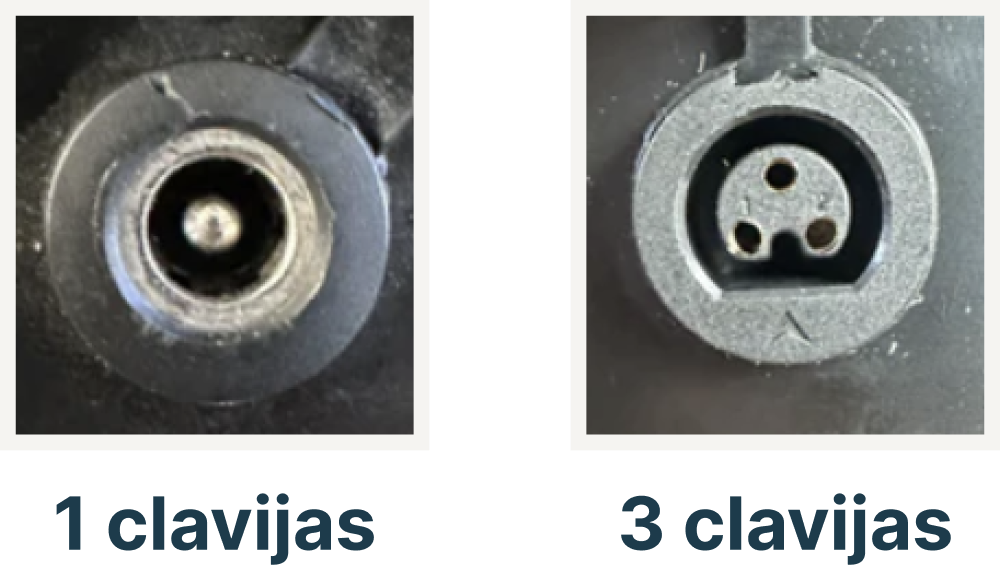 ATENCIÓN: Dependiendo del año de compra de su bicicleta, el conector de la batería puede ser diferente. POR FAVOR, VERIFIQUE LA COMPATIBILIDAD ENTRE NUESTROS 2 MODELOS DE CONECTOR: 1 PIN O 3 PINES.